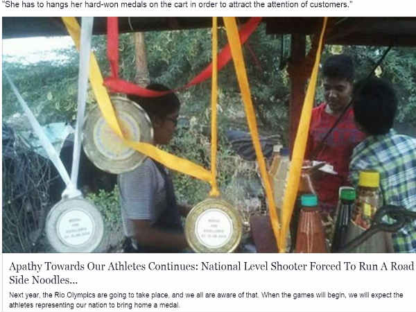 ದೇಶದ ಹೆಮ್ಮೆಯ ಕ್ರೀಡಾಪಟುವೊಬ್ಬಳು ಜೀವನ ನಿರ್ವಹಣೆಗಾಗಿ ನೂಡಲ್ಸ್ ಶಾಪ್ ನಡೆಸುತ್ತಿರುವ ಚಿತ್ರವು ತಾಣದಲ್ಲಿ ಬಿತ್ತರವಾಗುತ್ತಿದ್ದಂತೆಯೇ ಜನರು ಇದನ್ನು ಹೆಚ್ಚುಚ್ಚು ಲೈಕ್ ಮತ್ತು ಶೇರ್ ಮಾಡಿ ಆಕೆಗೆ ಭಾಗ್ಯದ ಬಾಗಿಲು ತೆರೆಯುವಂತೆ ಮಾಡಿದ್ದಾರೆ.