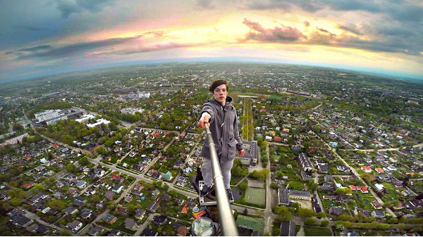 ಡೇರ್ಡೆವಿಲ್ ಫೋಟೋಗ್ರಾಫರ್ ಎರವಿನ್ ಪುಂಕರ್ ಎಸ್ಟೋನಿಯಾದ ಟರ್ಟುವಿನಲ್ಲಿರುವ 183 ಮೀಟರ್ ಎತ್ತರದ ಟಿವಿ ಟವರ್ ಮೇಲೆ ನಿಂತು ಸೆಲ್ಫೀ ಸ್ಟಿಕ್ ಬಳಸಿ ಸ್ವಂತಿ ತೆಗೆದುಕೊಂಡಿರುವುದನ್ನು ನೋಡಿದರೆ ಏನ್ ಧೈರ್ಯ ಗುರು ನಿಂದು ಎನ್ನಲ್ವೇ.
